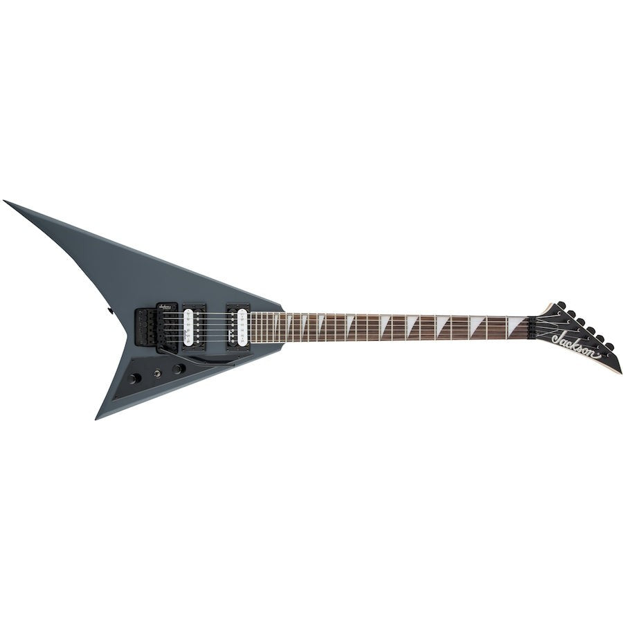 Parmi les autres caractéristiques, citons les micros "humbuckers" à haut rendement Jackson avec aimants en céramique, les commandes de volume et de tonalité simples, l'interrupteur à bascule à trois positions, un pont à trémolo double verrouillage Floyd Rose® de la marque Jackson et des mécaniquess scellés en fonte sous pression.
