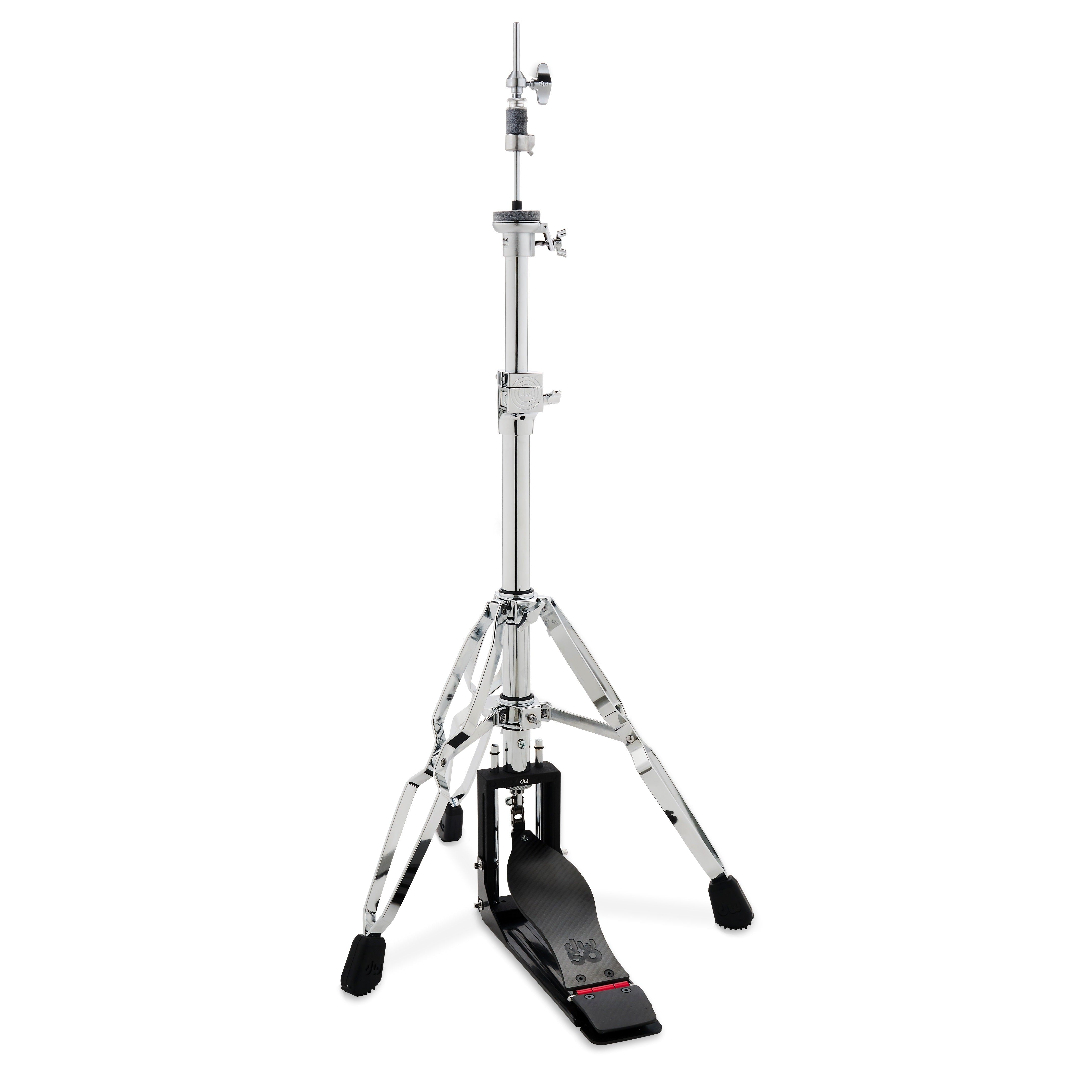 The limited-edition DW 50th Anniversary Carbon Fiber 3-Leg Hi-Hat Stand incorporates a DW50 signature logo on a carbon fiber footboard and heel plate. Designed to match the DW50 carbon fiber single and double pedals, this chain-driven stand is also equipped with a Delta Ball Bearing and a lateral cymbal seat adjustment to adjust the angle of the bottom cymbal. This hi-hat stands delivers all the speed, precision, and durability you expect from 5000 Series hardware — at a reduced weight.