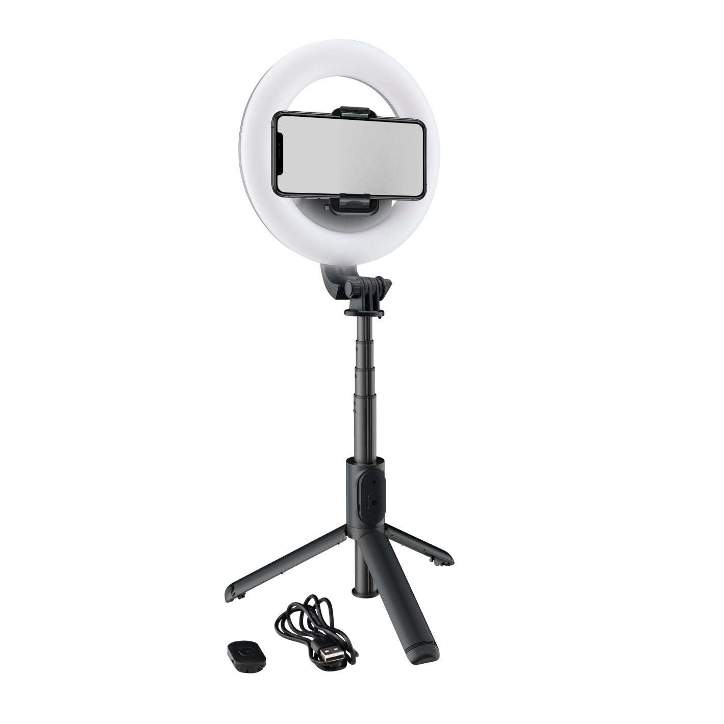 Le mRING-6 est une lampe annulaire alimentée par batterie de 6" de diamètre, parfaite pour les créateurs de contenu, le travail à distance, le streaming et bien plus encore sur les appareils mobiles. Avec le support/tige de selfie inclus, vous êtes prêt à travailler dès la sortie de la boîte, et la télécommande Bluetooth® vous permet de lancer facilement votre vidéo sans avoir à atteindre votre téléphone.