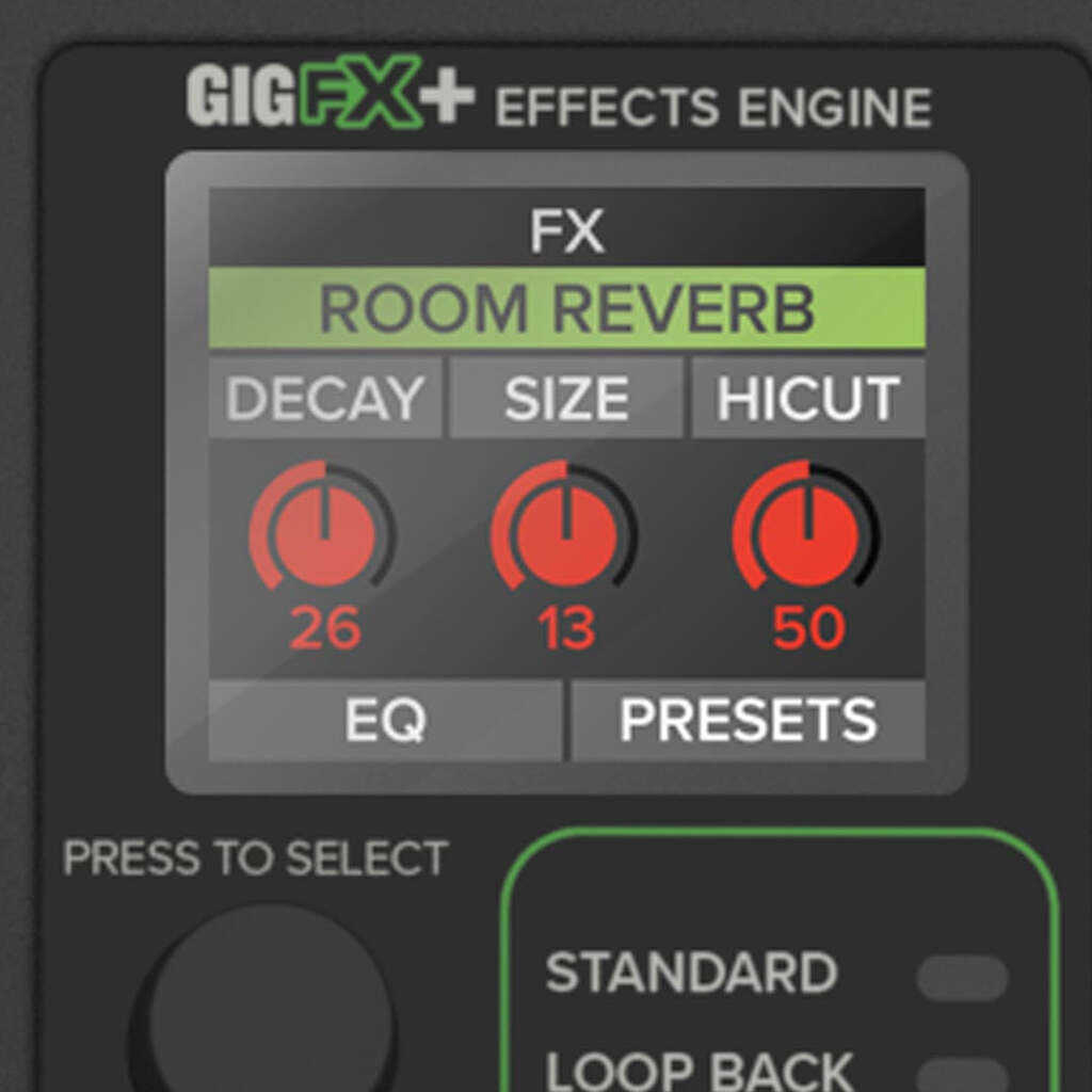 - Le moteur d‘effets haute résolution GigFX+™ comprend des réverbérations, des délais, des chorus et autres