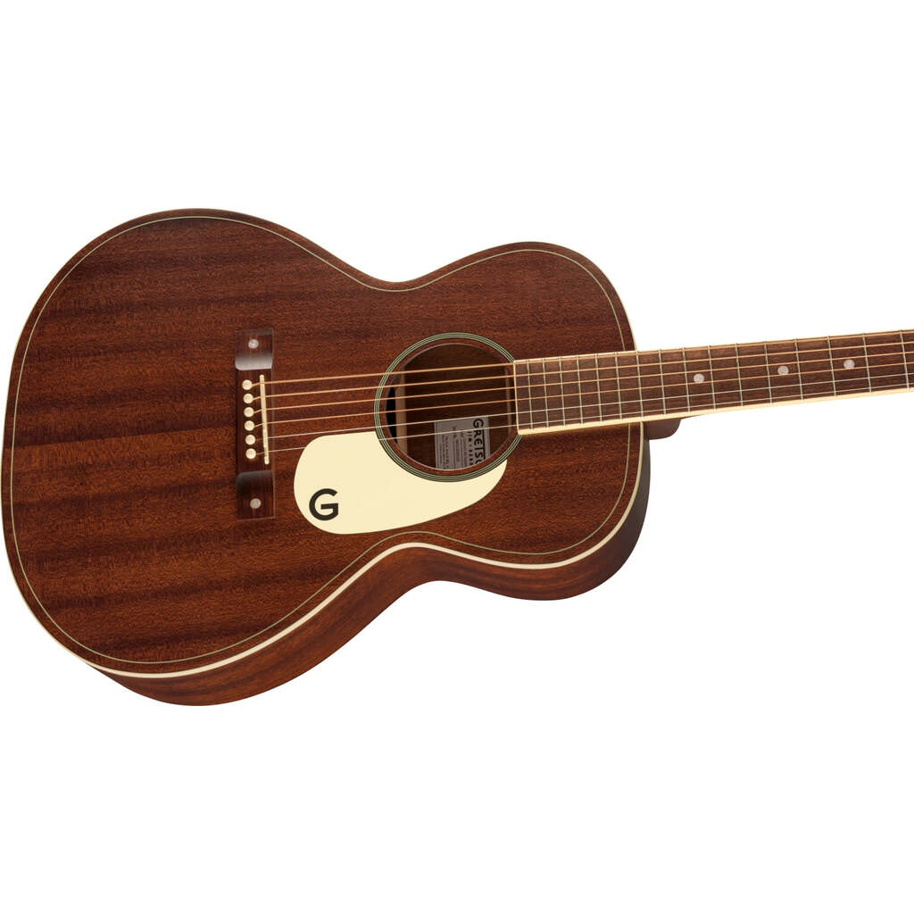 The X-braced body is crafted with select lightweight laminate tonewoods for an optimal balance of woody vintage tone and reliable durability, while the “C”-shape neck presents an inviting feel for hours of old-timey inspiration. Period-correct details such as a vintage-style pinned bridge, “G”-graphic pickguard, painted pinstripe purfling, 3-on-a-plate open-gear tuning machines and oversized dot fingerboard inlays combine for a nostalgic personality destined for any barnburner or jamboree.