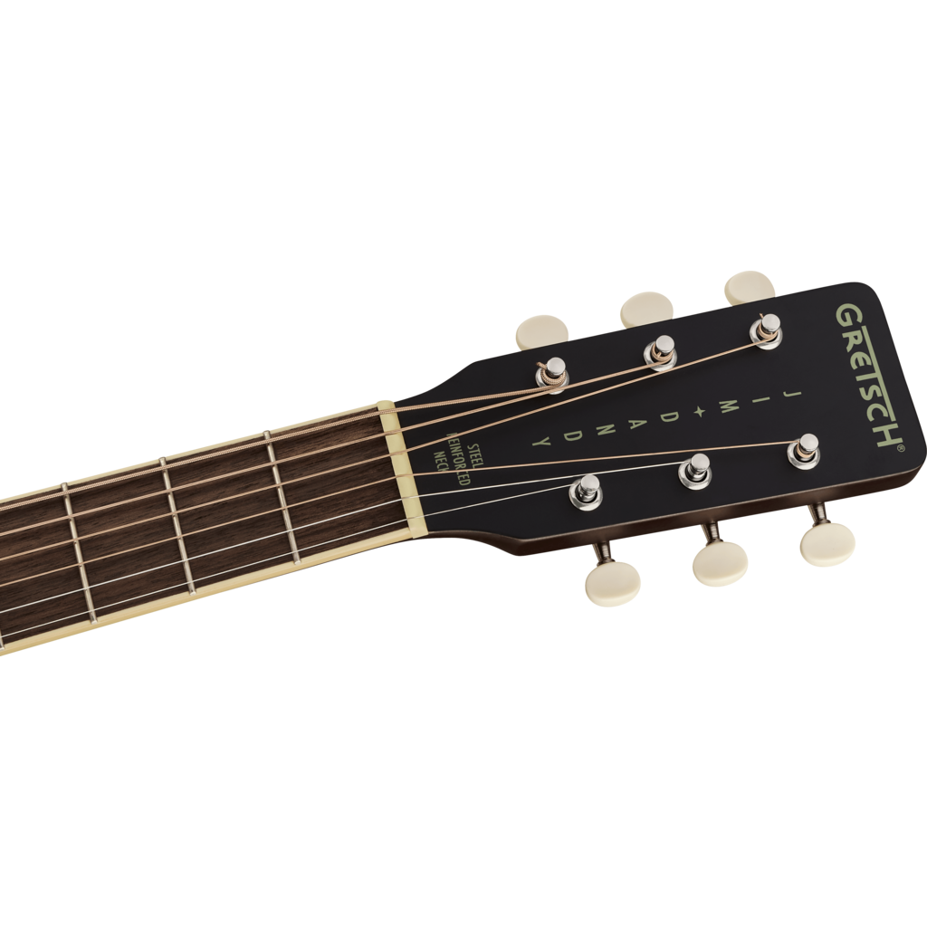Le corps à barrage en X est fabriqué avec des bois stratifiés légers sélectionnés pour un équilibre optimal entre sonorité vintage et durabilité fiable, tandis que le manche en « C » offre une sensation invitante pour des heures d'inspiration rétro. Des détails d'époque, tels qu'un chevalet à goupilles de style vintage, une plaque de protection à motif « G », des filets à rayures peintes, des mécaniques à engrenages ouverts 3 sur plaque et des incrustations de touche à points surdimensionnés, lui confèrent une touche nostalgique idéale pour tous les festivals et fêtes.