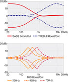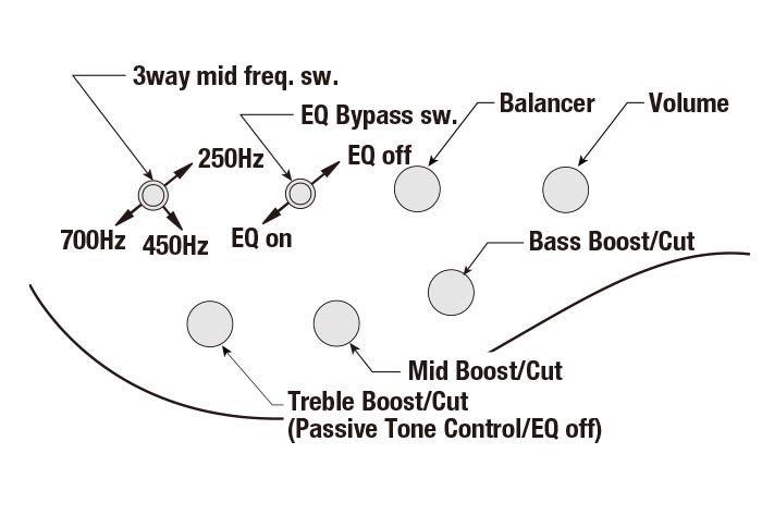 La commande de dérivation de l'égaliseur permet des réglages tonaux précis, avec notamment un commutateur pour choisir un fonctionnement entièrement passif. Lorsque la dérivation de l'égaliseur est activée, le potentiomètre de réglage des aigus devient le contrôle de tonalité global du circuit passif.