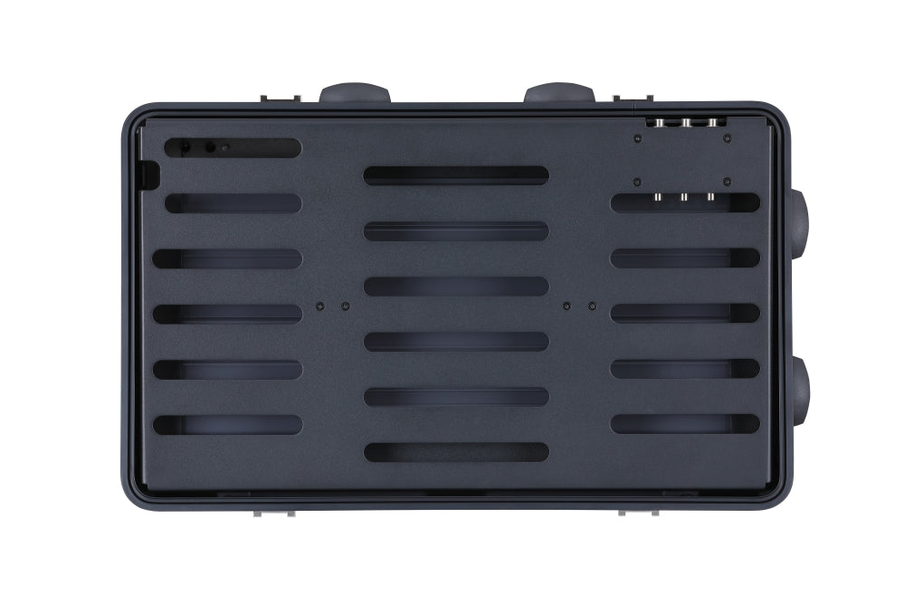 Le BCB-1000 présente une nouvelle approche innovante dans la conception du pédalier qui rend le voyage avec votre appareil plus facile que jamais. Le boîtier durable, de type valise, offre une protection robuste et est doté d'une poignée rétractable et de roues intégrées pour un transport fluide vers et depuis le lieu de concert. En détachant le couvercle, on découvre une surface de montage en aluminium à angle qui supporte deux rangées de pédales, avec un espace suffisant en dessous pour l'acheminement des câbles et l'alimentation électrique. Et grâce à la boîte de jonction intégrée, vous pouvez vous brancher et être prêt à jouer en un clin d'œil.