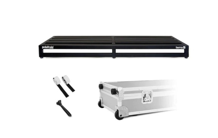Terra takes the best of Pedaltrain’s patented design and pushes it to new levels. Terra is the largest pedal board Pedaltrain makes. Terra is the perfect size for true pedal junkies and permanent studio installations. Terra features all of Pedaltrain’s latest design improvements including: lightweight aircraft-grade aluminum frame, open-front design (for unlimited flexibility mounting power supplies and switching systems under the pedal board) and modified rail system (which provides the strongest pedal adhesion ever, even for micro-sized pedals). Terra is available for purchase with either Pedaltrain’s fitted soft case (featuring a heavy-duty metal zipper and reinforced stress points) or Pedaltrain’s professional-grade tour case, engineered to be up to 35% lighter than previous models.