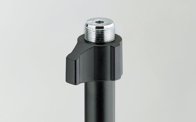 - En général, des filetages usinés permettent de fixer un support de micro à  une base moulée. Mais les filetages sont facilement endommagés, et si un support de micro est manipulé brutalement, l'extrémité filetée du tuyau inférieur peut être cassée. La conception simple de Tama élimine ce point faible. La base ronde moulée de Tama possède une poche non filetée qui accepte le tuyau inférieur. Un boulon en « T » sur la face inférieure de la base mouleée fixe ensuite le tuyau à  la base. Non seulement cette solution est plus durable, mais les utilisateurs trouveront également le montage et le démontage plus faciles.