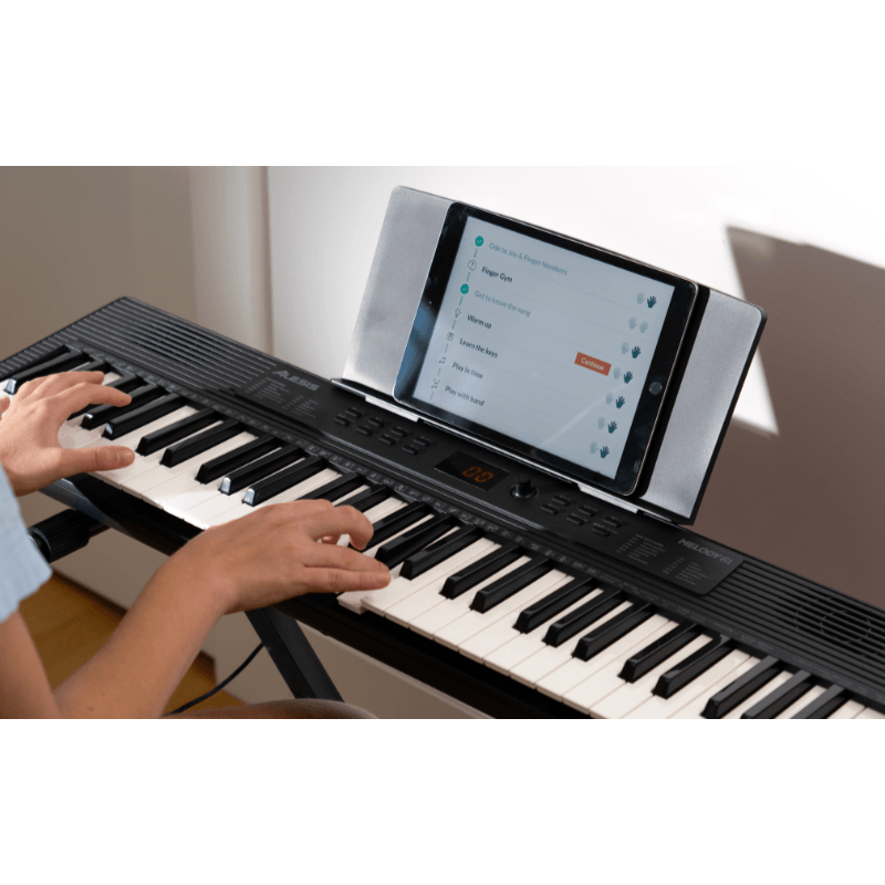 The Alesis Melody 61 is a portable keyboard with built-in speakers that delivers an ideal introductory playing experience for beginner piano students of all ages. With an easy-to-use control panel loaded with features and sounds, the Melody 61 features 61 compact keys — perfect for helping new students develop finger strength and dexterity. Melody 61 includes all the accessories you need to start playing immediately.