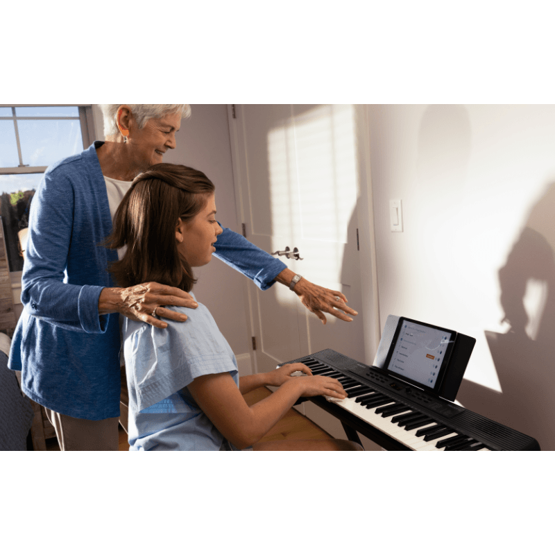 Whether you are traveling to lessons or to perform for your family at a party, Melody 61's built-in speakers, optional battery power, and compact size make it easy to transport.