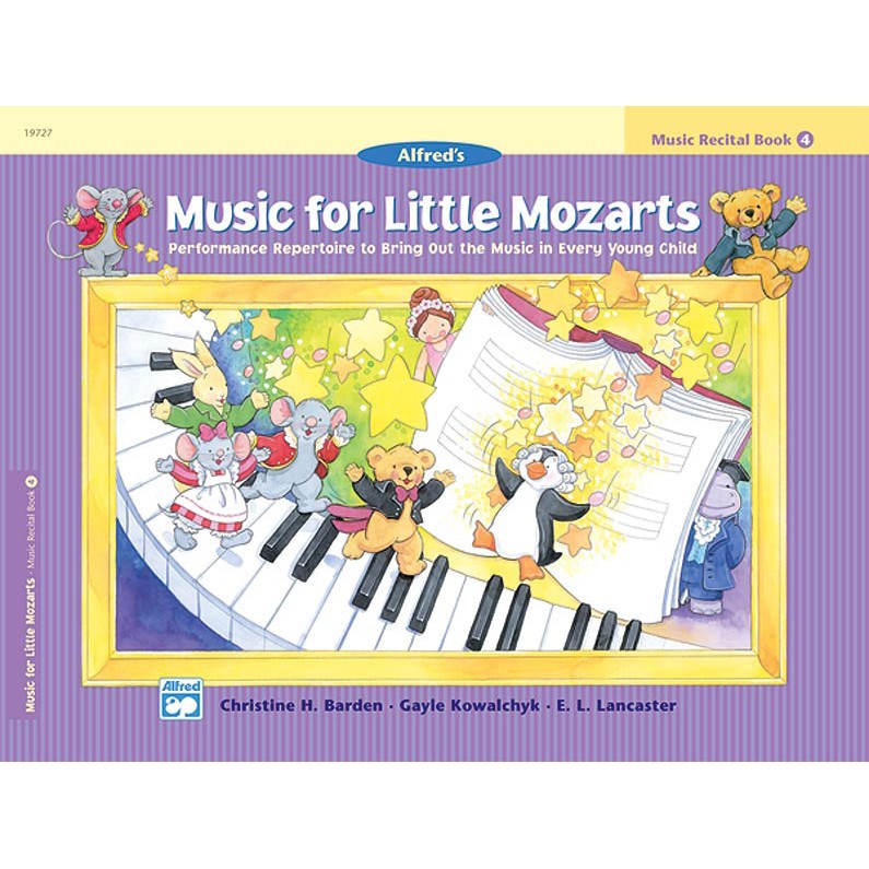 Elgar E. Elephant et Pachelbel Penguin explorent un livre d'histoire de la musique magique et se retrouvent bientôt à présenter Beethoven Bear et Mozart Mouse à des thèmes classiques, tels que Trumpet Voluntary, Anvil Chorus et Theme from Swan Lake ---- ainsi que d'autres nouvelles pièces qui améliorer le scénario. Le livre 4 complète la série de livres de récitals de la collection Music for Little Mozarts.