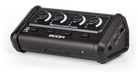 Amplificateur casque compact 4 sorties. Le ZHA-4 divise une sortie casque stéréo en quatre prises jack 3,5 mm, chacune dotée de ses propres commandes de volume et de coupure du son. Idéal pour les groupes, les podcasts, les productions, etc. Amplificateur casque stéréo portable conçu pour le monitoring audio exigeant et critique. 4 sorties casque 3,5 mm indépendantes, chacune avec un bouton de volume dédié. Des boutons de coupure du son indépendants pour chaque canal permettent de couper immédiatement le son de chaque canal de sortie sans affecter les paramètres de sortie généraux. Système d'alimentation bidirectionnel très polyvalent. Alimentation par deux piles AA, connecteur USB Type-C d'un adaptateur secteur USB ou d'une batterie externe USB. Caractéristiques