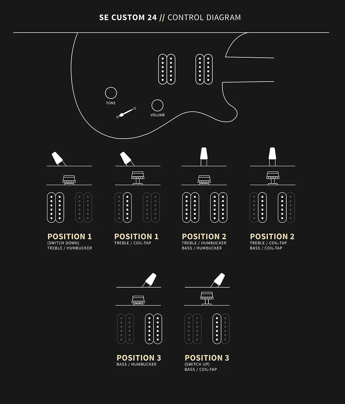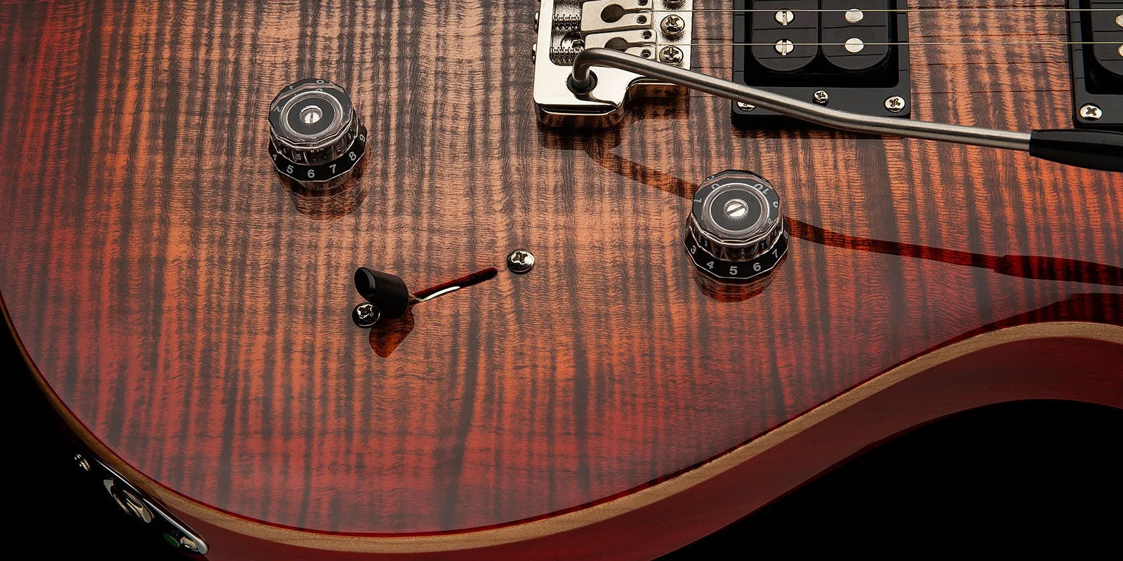 - Dotée d'une table en érable, d'un dos en acajou, d'un manche large et fin en érable, d'une touche en palissandre avec incrustations d'oiseaux et du trémolo breveté de PRS, la SE Custom 24 de PRS présente de nombreuses caractéristiques familières. Ses sons polyvalents proviennent des micros « S » 85/15 associés à une commande de volume, une commande de tonalité « push/pull » et un sélecteur de micro à lame à 3 voies. Désormais dotée de boutons ergonomiques en forme d'abat-jour et du design de l'embout de commutation de PRS à poignée plate, la SE Custom 24 de PRS est plus performante que jamais.