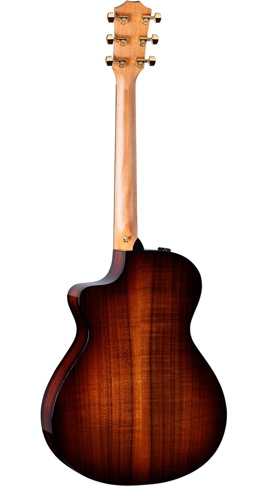 This deluxe Grand Concert acoustic-electric boasts a gorgeous visual profile thanks to back, sides and top of beautiful Hawaiian koa. A solid top yields a punchy midrange response with clear trebles and a woody, focused character that will grow even warmer over time. The compact body shape and narrower 1-11/16-inch nut width make for a remarkably accommodating, relaxed feel, perfect for everything from flatpicking and strumming to fingerstyle arrangements. Aesthetic refinements include a full-body gloss finish and gold hardware. This model includes ES2 electronics for clear, balanced plugged-in tone and a hardshell case for storage and transportation.