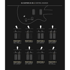 - Commandes : commandes de volume et de tonalité avec commutateur de micro à bascule à 3 positions et deux mini-commutateurs d'égalisation à bascule
