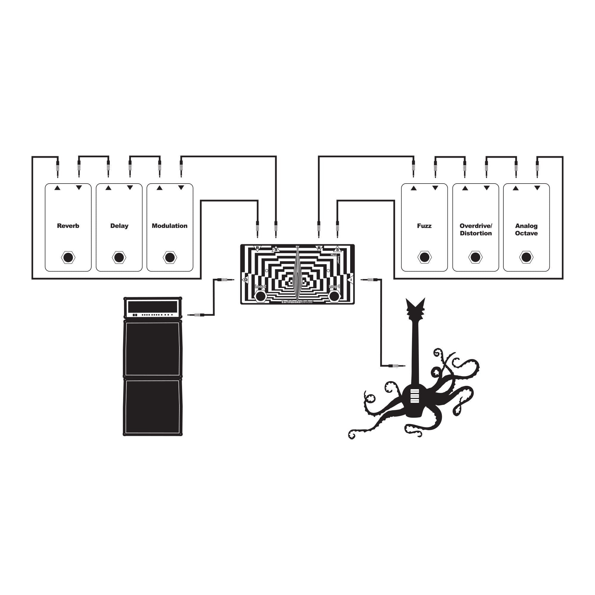 L'utilisation d'un sélecteur de boucle d'effet sur votre pedalboard vous permet de supprimer facilement tous vos effets du chemin du signal en créant un chemin de moindre résistance pour maintenir l'intégrité tonale complète lorsqu'ils ne sont pas utilisés. L'utilisation d'une boucle d'effet double avec la technologie Flexi-Switch® vous permet de créer deux boucles d'effets distinctes, puis de les introduire ou de les supprimer toutes à la volée en toute simplicité !