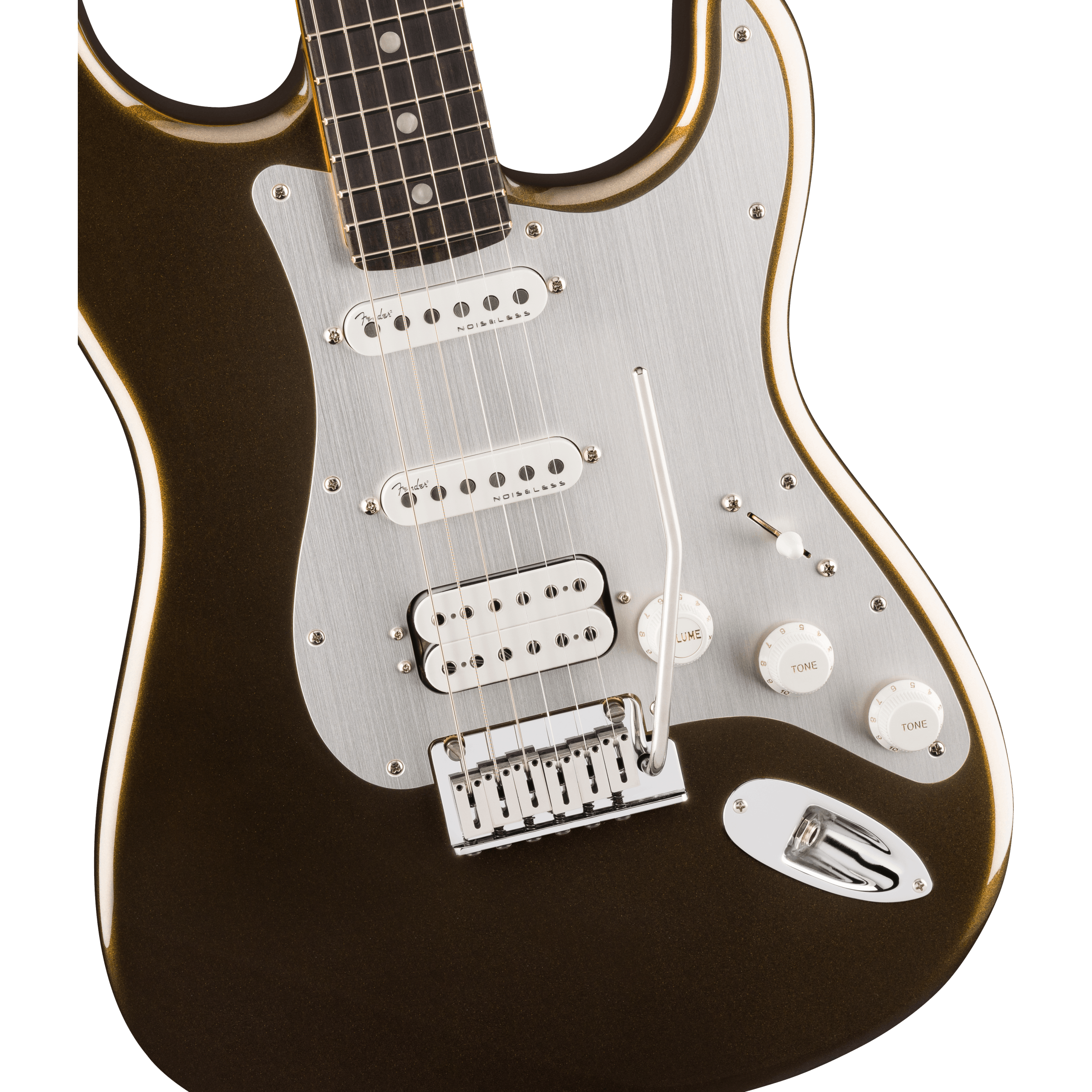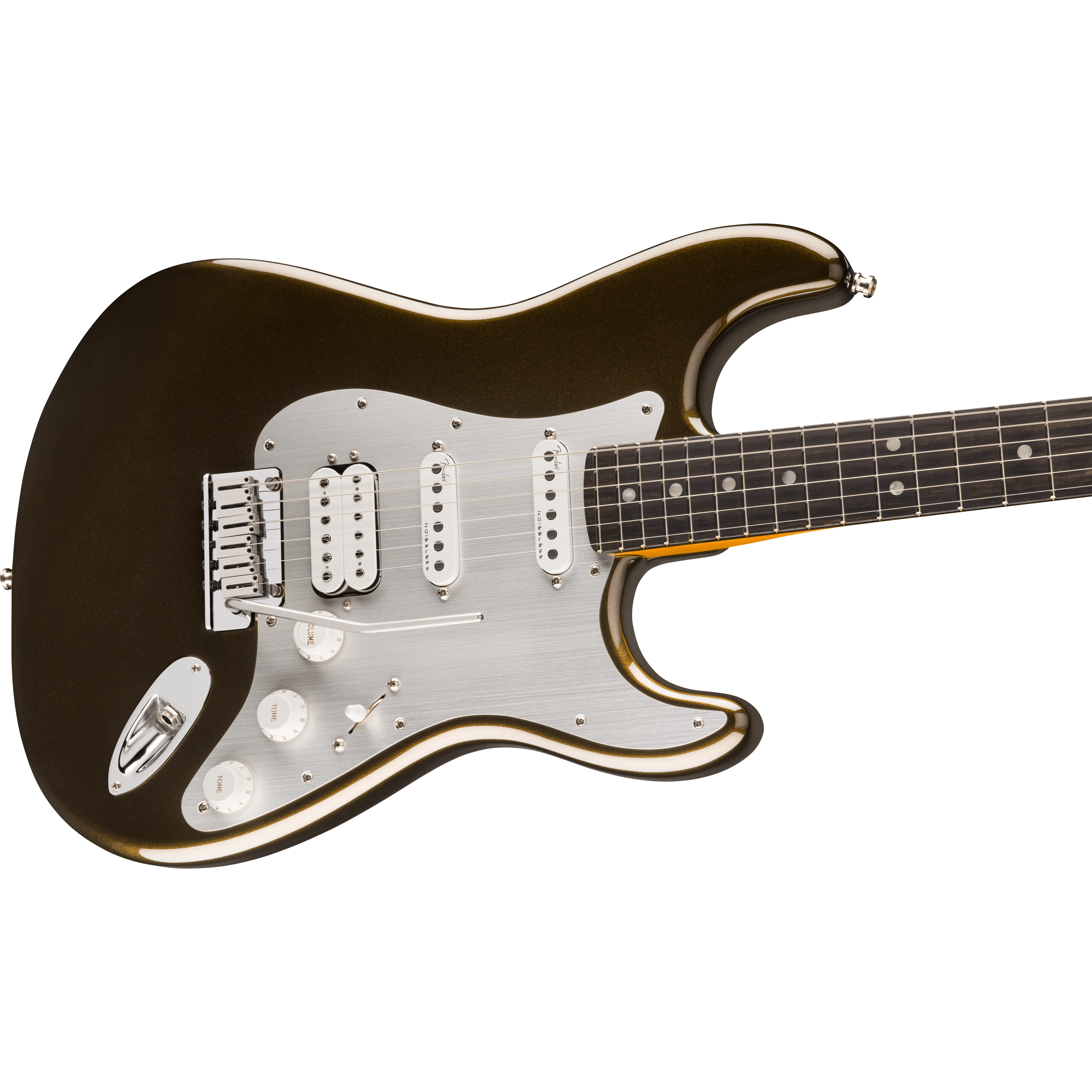 Sous le capot, une paire de micros Ultra II Noiseless™ Hot Strat® associés à un humbucker Haymaker™ délivrent tout, des sons clairs cristallins doux aux sons principaux brûlants, le tout sans la moindre trace de bourdonnement. Notre commutateur breveté S-1™ divise intelligemment le Haymaker pour encore plus de variété tonale. Les autres caractéristiques prêtes pour la route comprennent un vibrato synchronisé American Ultra à 2 points avec bras pop-in, des pontets en acier inoxydable poli, un bloc en acier laminé à froid, des mécaniques de verrouillage de luxe, des boutons doux au toucher et un pickguard en aluminium anodisé 1 pli.