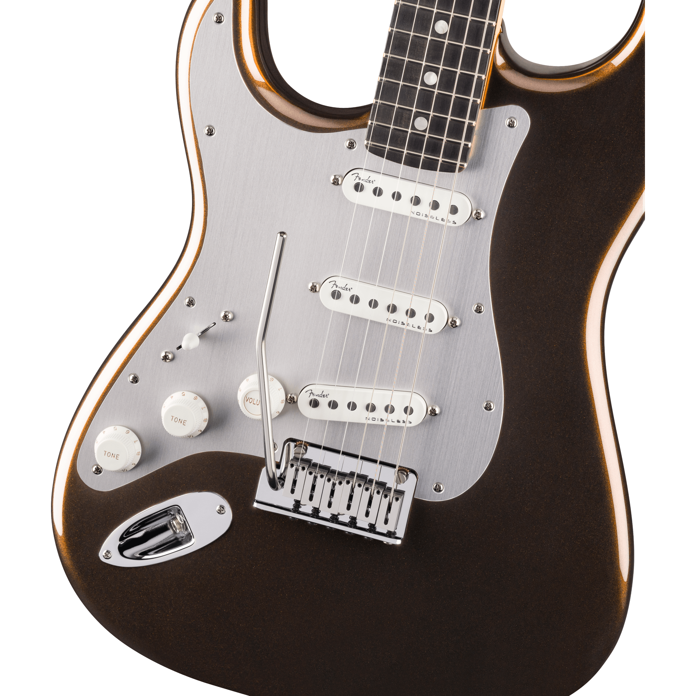 Sous le capot, un trio de micros Ultra II Noiseless™ Vintage Strat® délivre tout, des sons clairs cristallins doux aux sons de plomb brûlants, le tout sans la moindre trace de bourdonnement. Notre commutateur breveté S-1™ déverrouille intelligemment des configurations de micros supplémentaires pour encore plus de variété tonale. Les autres caractéristiques prêtes pour la route comprennent un vibrato synchronisé American Ultra à 2 points avec bras pop-in, des pontets en acier inoxydable poli, un bloc en acier laminé à froid, des mécaniques de verrouillage de luxe, des boutons doux au toucher et un pickguard en aluminium anodisé 1 pli.