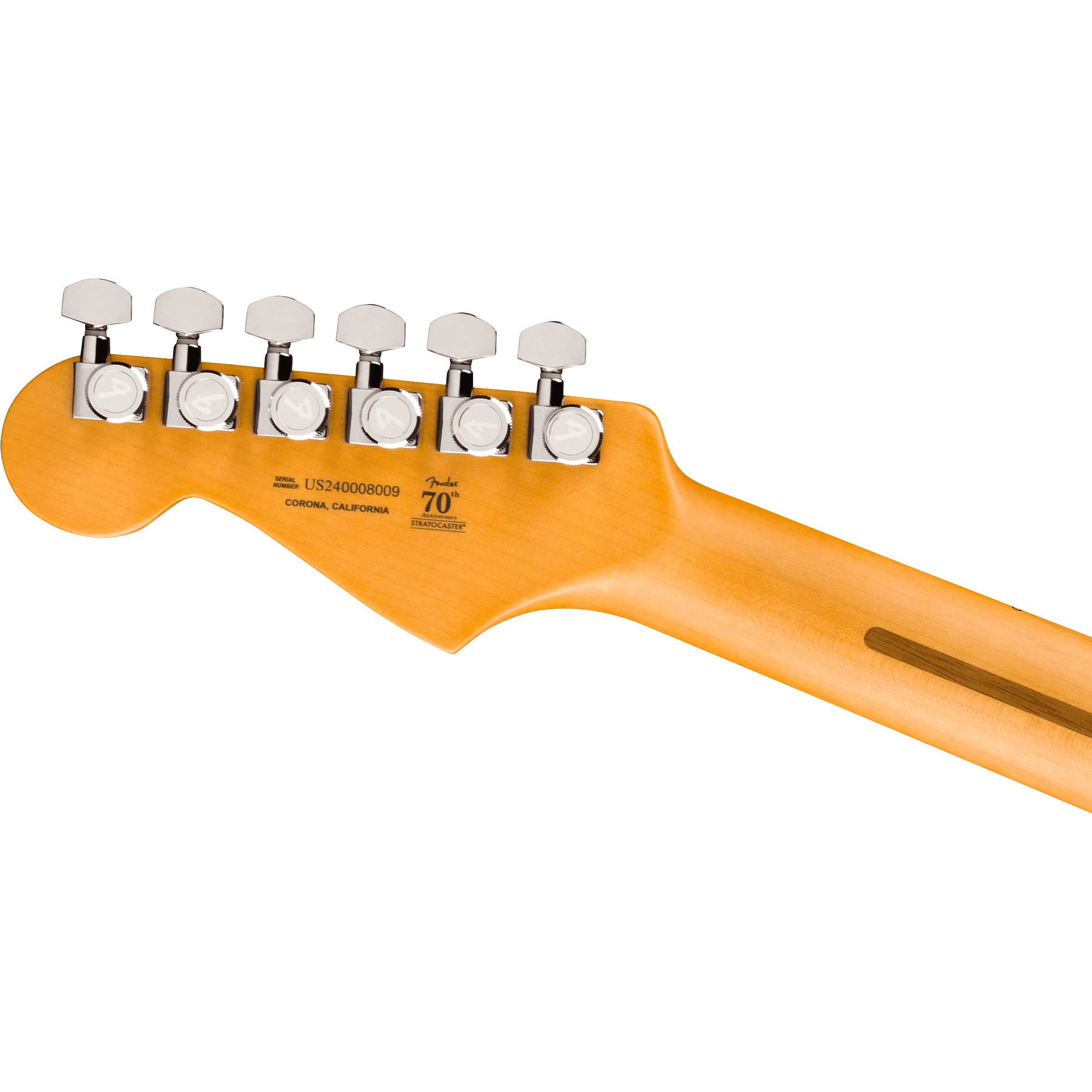 Under the hood, a trio of Ultra II Noiseless™ Vintage Strat® pickups deliver everything from sweet crystalline cleans to searing leads, all without a hint of hum. Our patented S-1™ switch cleverly unlocks additional pickup configurations for even more tonal variety. Additional road-ready features include 2-Point American Ultra synchronized tremolo with pop-in arm, polished stainless steel block saddles, cold rolled steel block, deluxe locking tuners, soft-touch knobs and 1-ply anodized aluminum pickguard.
