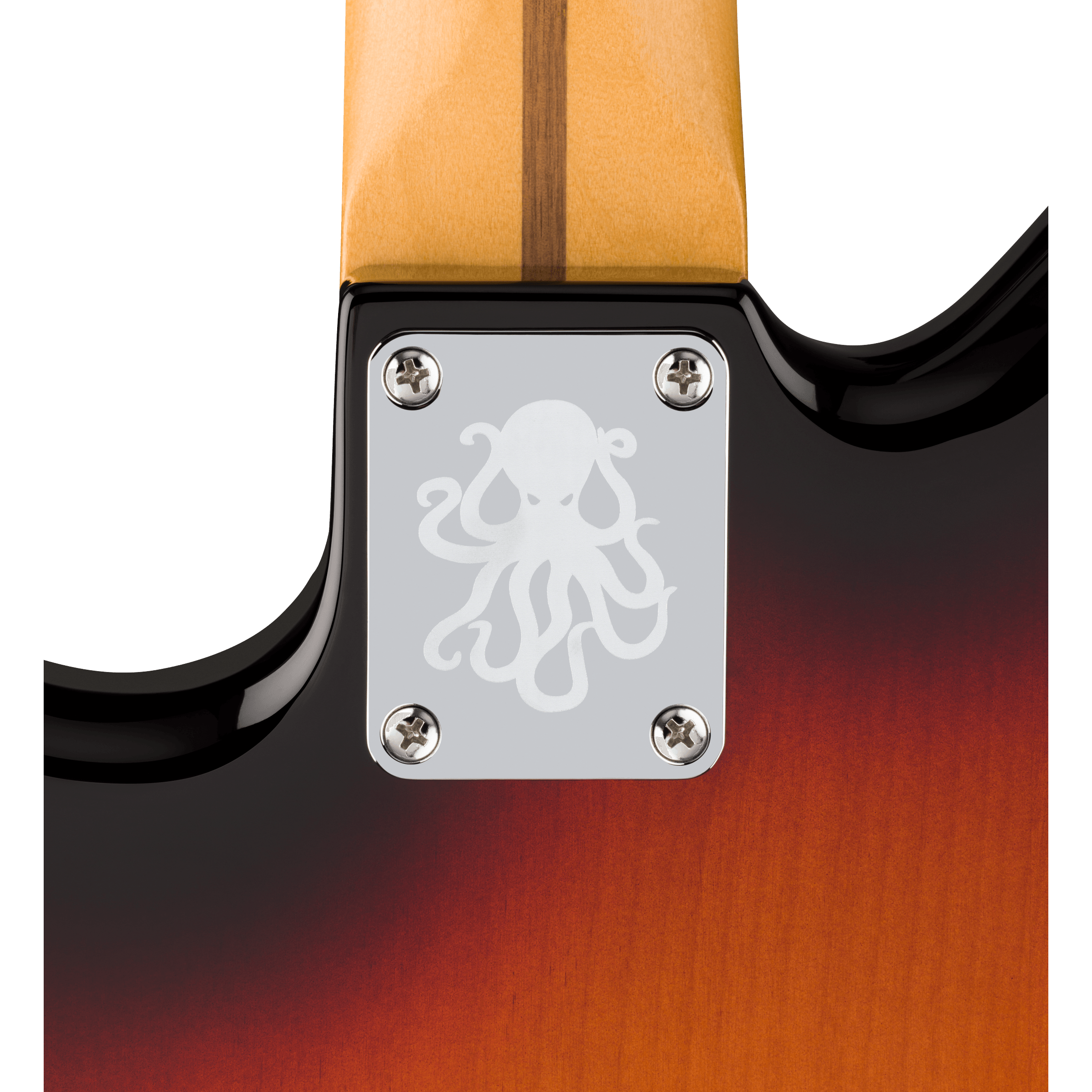 Voici la basse Fender® Limited Edition Mark Hoppus Jaguar®. Cette édition limitée sera épuisée avant même que vous ne clignez des yeux, alors prenez la vôtre dès aujourd'hui et possédez le modèle exact que Mark Hoppus joue actuellement sur scène avec Blink-182. Pour commencer, vous obtenez un corps Jaguar® en aulne solide comme le roc et tout en courbes. Ajoutez à cela un manche en érable avec un profil « C » personnalisé, une belle touche en palissandre et d'élégants points nacrés blancs, le tout surmonté d'un jeu de mécaniques légères de style vintage. Le pickguard perlé blanc à 4 plis est équipé de micros Seymour Duncan® SPB3 Quarter Pound™ split-coil P Bass® montés sur mesure en positions inversées. Pour un son stellaire et une intonation solide comme le roc, cette basse Jaguar est dotée d'un chevalet HiMass™ Vintage. La plaque de manche personnalisée présente le logo pieuvre « Hi My Name is Mark » de Mark, tout comme le sac de transport de luxe inclus.