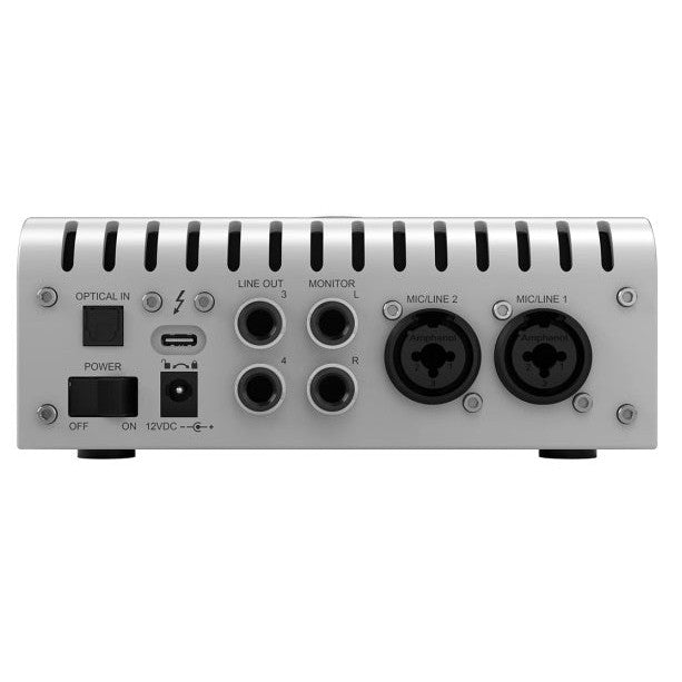 • Deux préamplis micro Unison™, entrée instrument Hi-Z, entrée optique Toslink (ADAT ou S/PDIF)