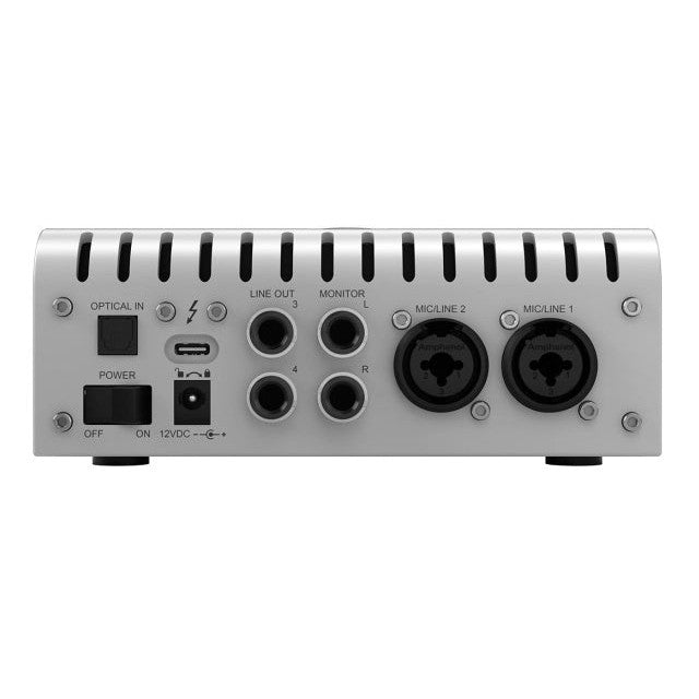 • Deux préamplis micro Unison™, entrée instrument Hi-Z, entrée optique Toslink (ADAT ou S/PDIF)