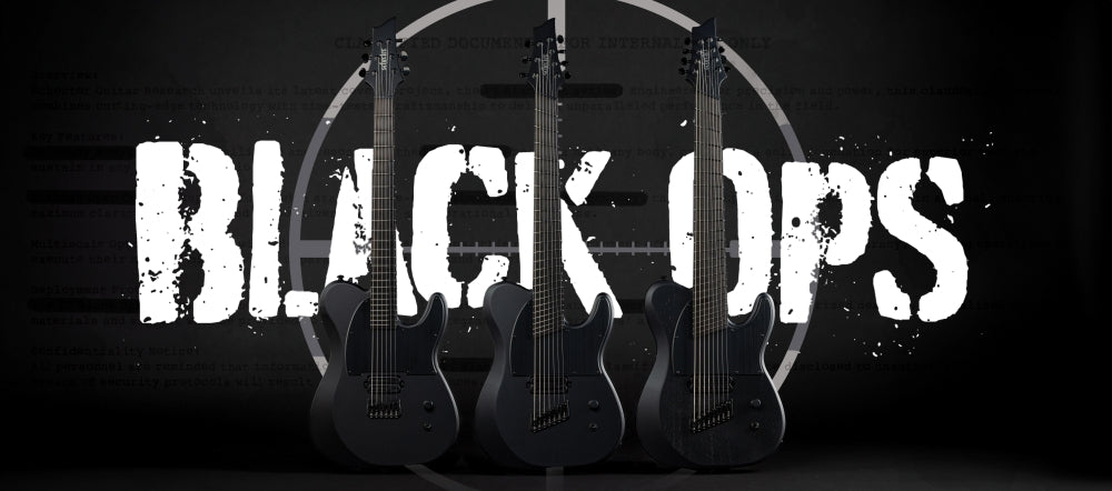 Schecter - PT-8 Black Ops Guitare électrique 8 cordes pour gaucher, Noir satiné à pores ouverts - 625-SHC