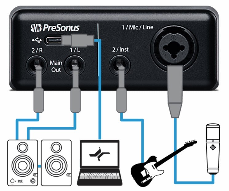 - Bus-Powered: AudioBox GO is powered by your connected USB-C® device so no need for an additional power supply – works great with both Apple® and Android™