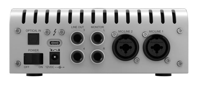 • Deux préamplis micro Unison™, entrée instrument Hi-Z, entrée optique Toslink (ADAT ou S/PDIF)