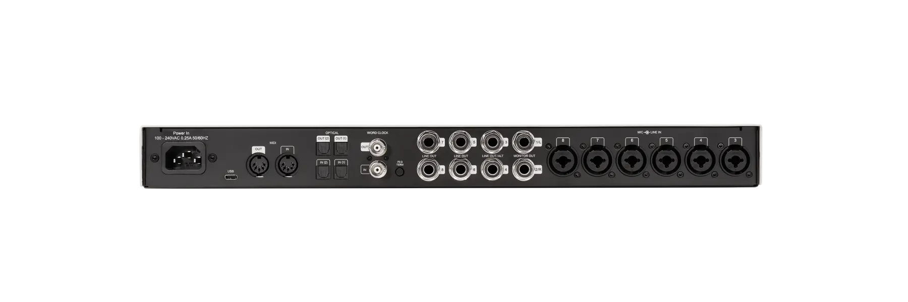 • Interface audio USB 24 entrées / 28 sorties avec huit préamplis et conversion audio 32 bits / 192 kHz de pointe