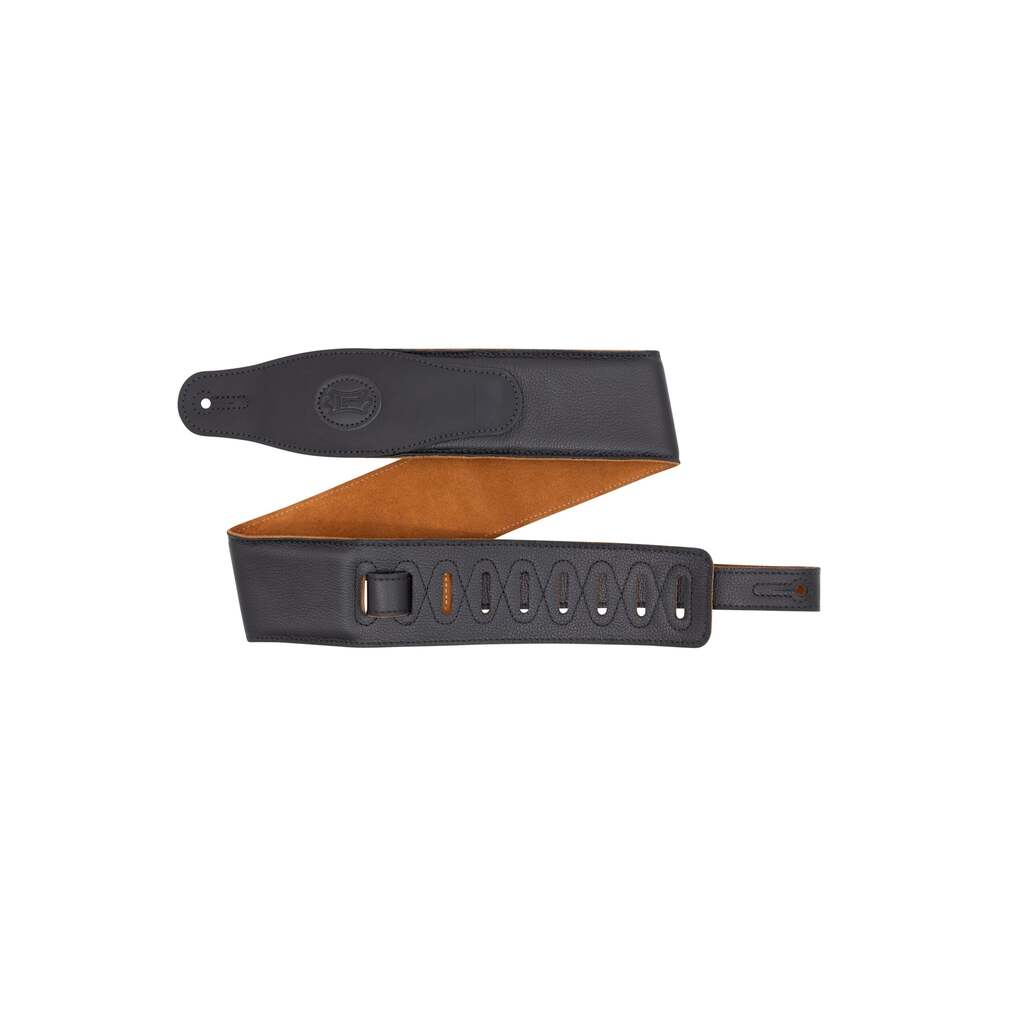 - 3″ Black Padded Garment Leather Guitar Strap with Honey Suede Backing