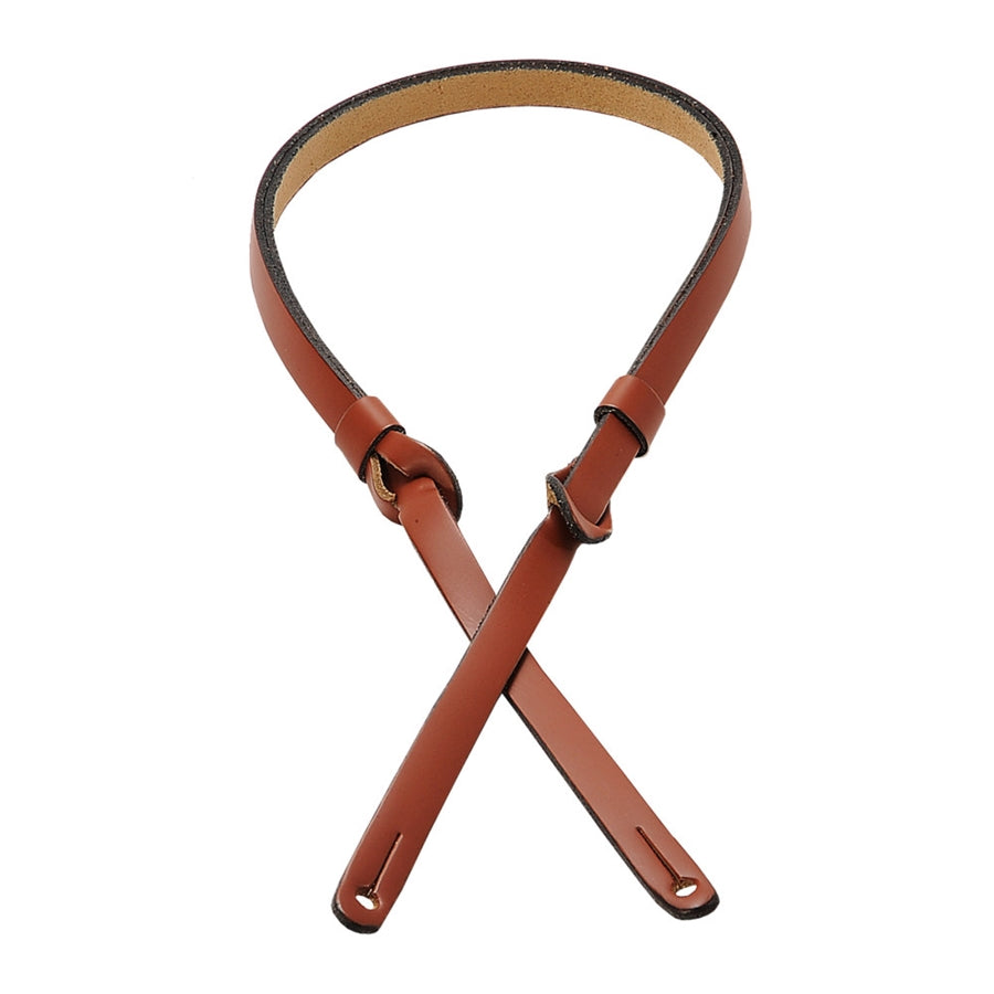 Levy’s 1/2″ wide walnut veg-tan leather mandolin strap.