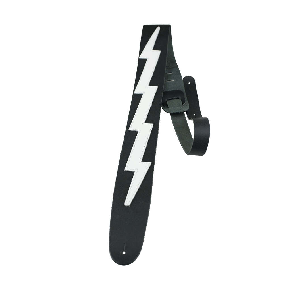 Perri's - 2.5” Black / White Famous Guitar Strap with Lightning Bolt - P25LB-218