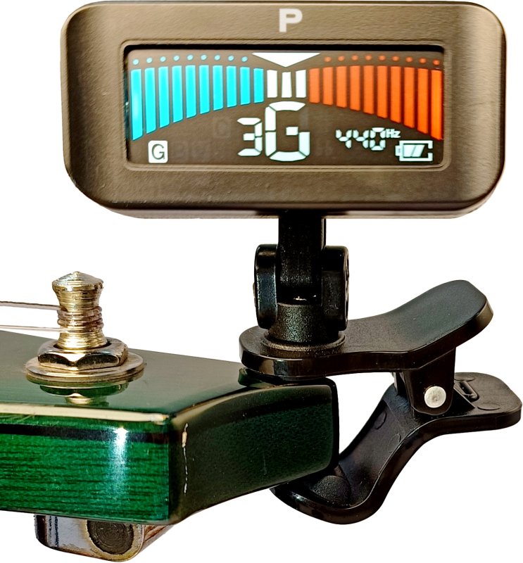 Accordeur chromatique pour guitare, basse, violon et ukulélé.