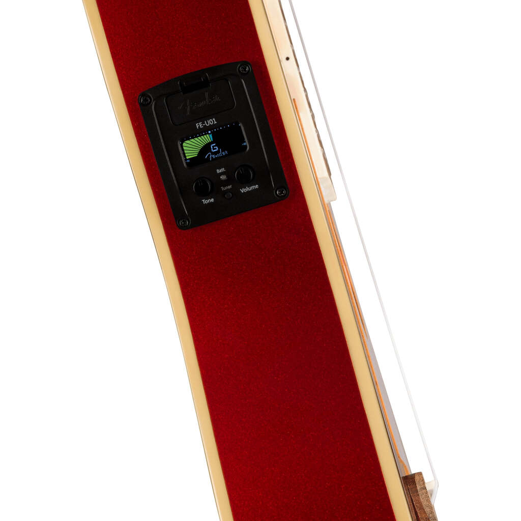 Tipping the hat to Fender's iconic guitar body shapes, the Fullerton Series ukuleles are nothing short of electric. The Fullerton Stratocaster departs from traditional ukulele construction and aesthetics, while remaining faithful to Fender's history. The Stratocaster ukulele's pickguard, signature finish color options, and 4-in-line headstock can only be categorized as quintessentially Fender. The Fullerton Stratocaster is the perfect choice for the ukulele player looking to inject the spirit of rock 'n roll into every performance.