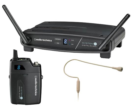 Récepteur ATW-R1100 et émetteur ATW-T1001 UniPak® avec microphone serre-tête à condensateur omnidirectionnel PRO 92cW-TH (beige).