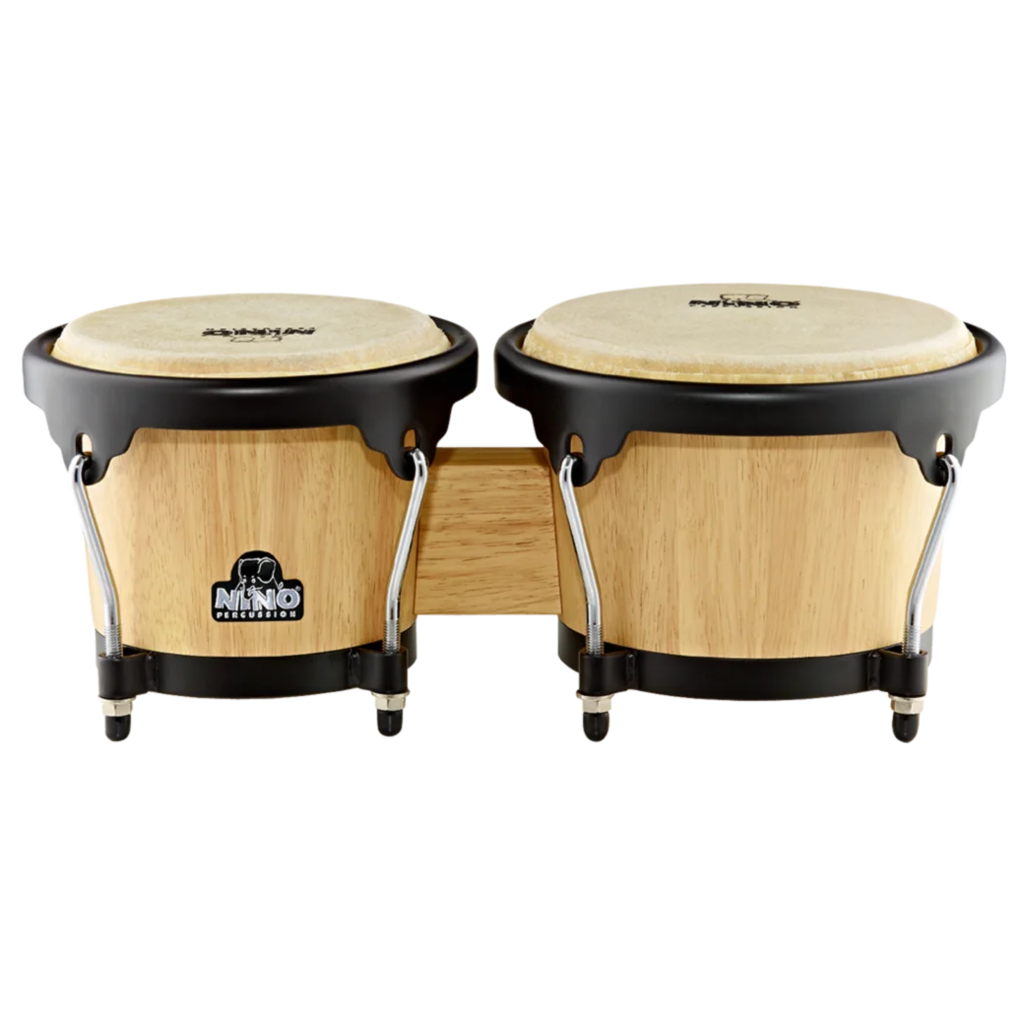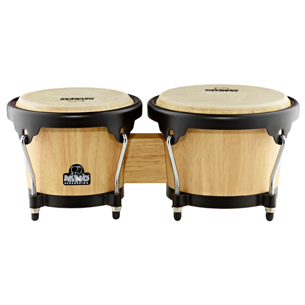 Meinl - Nino - Bongos en bois 6 1/2" et 7 1/2" Fût naturel Accastillage noir NINO3NT-BK