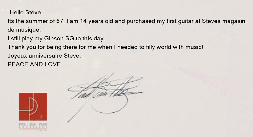 Venez nombreux ! Steve's™ Music Store célèbre un événement monumental : son 60e anniversaire ! Et nous voulons que VOUS participiez aux festivités. Rejoignez-nous pour créer cette page spéciale remplie de souvenirs précieux, d'histoires sincères et de moments joyeux.