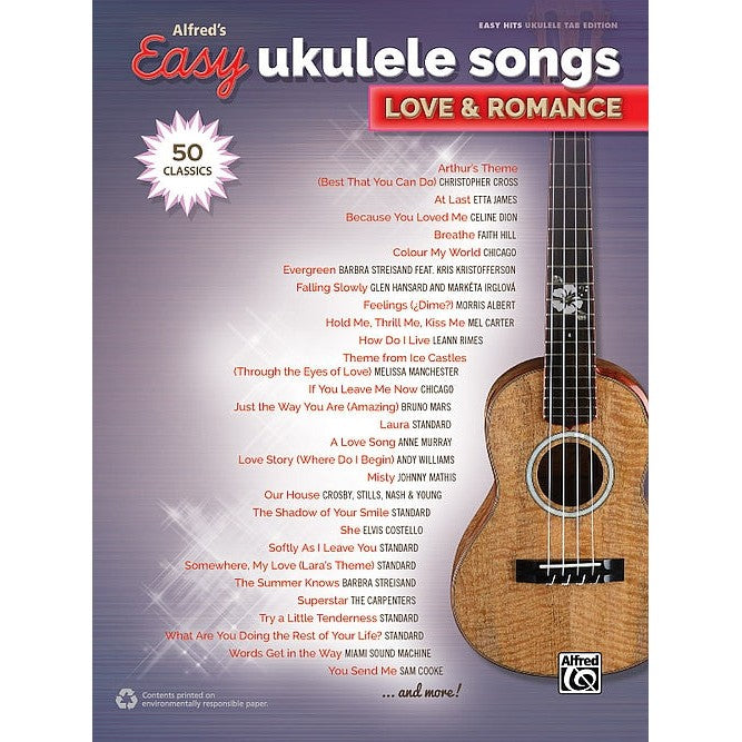 Pour les musiciens débutants, la série Alfred's Easy constitue la voie rapide pour développer un répertoire de chansons bien connues et amusantes à jouer, tandis que les musiciens plus expérimentés trouveront une excellente ressource de chansons préférées. Le format Easy Hits Ukulele fournit une mélodie, des accords et des paroles pour une performance facile de « gratter et chanter » --- ainsi que des modèles de grattement suggérés et des TAB pour toutes les parties « crochet » intégrales. Cette édition Love and Romance présente des chansons d'artistes tels que Céline Dion, Chicago, Bruno Mars, Andy Williams, Sam Cooke, Phil Collins et bien d'autres ! Titres : Contre toute attente (Jetez un oeil à moi maintenant) (Phil Collins) * Le thème d'Arthur (Le mieux que vous puissiez faire) (d'Arthur) (Christopher Cross) * Enfin (Etta James) * Parce que vous m'aimiez (Thème de De près et personnel) (Céline Dion) * Respirez (Faith Hill) * Pouvez-vous lire dans mes pensées ? (Thème d'amour de Superman) (Maureen McGovern) * Color My World (Chicago) * Evergreen (Thème d'amour de A Star Is Born) (Barbra Streisand feat. Kris Kristofferson) * Falling Slowly (from Once) (Glen Hansard et Marketa Irglova) * Sentiments (Dime ?) (Morris Albert) * Rien que pour vos yeux (de Rien que pour vos yeux) (Sheena Easton) * Gloire de l'amour (thème de The Karate Kid Part II) (Peter Cetera) * Le plus grand amour de tous ( Whitney Houston) * Tiens-moi, fais-moi plaisir, embrasse-moi (Mel Carter) * Comment vivre (LeAnn Rimes) * Comment continuez-vous à jouer de la musique ? (de Best Friends) (Patti Austin et James Ingram) * (Tout ce que je fais) Je le fais pour toi (Bryan Adams) * Je le jure (John Michael Montgomery) * Thème de Ice Castles (À travers les yeux de l'amour) (Melissa Manchester ) * Si tu me quittes maintenant (Chicago) * Je resterai à tes côtés (The Pretenders) * Je ne suis pas amoureux (10cc) * Ça pourrait être toi (Thème de Tootsie) (Stephen Bishop) * Juste comme tu Sont (Amazing) (Bruno Mars) * Just You 'n' Me (Chicago) * Laura (Standard) * Regardez ce que vous m'avez fait (Boz Scaggs) * L'amour est une chose aux multiples splendeurs (Standard) * Une chanson d'amour (Anne Murray) * Histoire d'amour (Où dois-je commencer) (Andy Williams) * Misty (Johnny Mathis) * Moonlight (Sting) * Plus que vous ne le savez (Standard) * Personne ne le fait mieux (de L'espion qui m'aimait) ( Carly Simon) * Bras ouverts (Journey) * Notre maison (Crosby, Stills, Nash et Young) * L'ombre de ton sourire (de The Sandpiper) (Standard) * Elle (Elvis Costello) * Doucement, alors que je te quitte (Standard ) * Quelque part, mon amour (Thème de Lara) (du Docteur Jivago) (Standard) * Stardust (Standard) * The Summer Knows (Thème de l'été 42) (Barbra Streisand) * Superstar (Les charpentiers) * The Sweetheart Tree ( de La Grande Course) (Henry Mancini) * Essayez un peu de tendresse (Standard) * Que faites-vous le reste de votre vie ? (Standard) * Les mots gênent (Miami Sound Machine) * Vous devez croire au printemps (Tony Bennett et Bill Evans) * Vous m'envoyez (Sam Cooke) * (Pour) votre précieux amour (Jerry Butler).