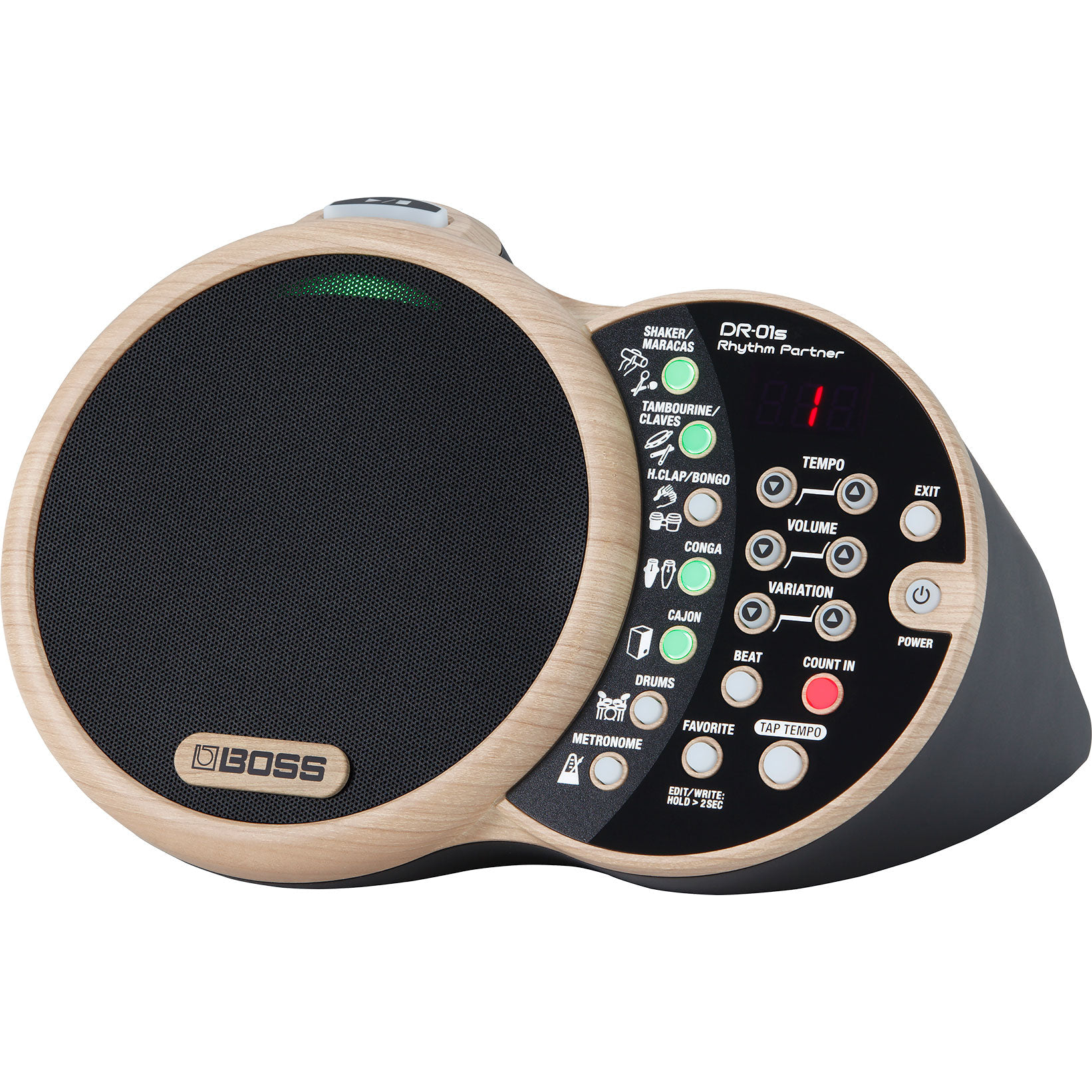 DES GROOVES ORGANIQUES POUR LES MUSICIENS ACOUSTIQUES Voici le Rhythm Partner DR-01S, le premier percussionniste virtuel au monde conçu spécialement pour les musiciens acoustiques. Au contraire des boîtes à rythme utilisées par les musiciens électroniques et les DJs, la DR-01S contient des sons de percussion organiques et des grooves simples et polyvalents, qui apporteront un accompagnement raffiné à vos concerts acoustiques. C'est un instrument idéal pour accompagner les guitares acoustiques et les voix, mais aussi le ukulele, le violon, le piano et autres instruments acoustiques. L’interface conviviale du DR-01S permet de trouver facilement le beat et la variation qui convient à chaque style, tandis que le haut-parleur intégré fournit un son haute qualité qui complète harmonieusement celui des instruments acoustiques. Et grâce à son fonctionnement sur piles, vous pouvez l’emporter partout. Que vous jouiez en solo ou avec un ami, la DR-01S vous apportera inspiration et plaisir supplémentaires lors de vos sessions en acoustique. CARACTÉRISTIQUES BOSS Rhythm Partner DR-01s : Boîte à rythme Polyphonie maximum 24 Tempo 40–300 Signature temporelle 3/4, 4/4, 6/8 Sons Shaker Maracas Bell Whistle Tambourine Pandeiro Claves Cowbell Triangle Guiro Bongo Hand clap Paila Conga Cajon Drums Metronome Sound effects Nombre de favoris 50 Sortie de puissance nominale 7 W Haut-parleur 10 cm Écran 7 segments, 3 caractères (DEL) Conversion DA 24 bits Niveau d’entrée nominale AUX IN : -20 dBu Impédance d’entrée AUX IN : 22 k? Niveau de sortie nominale LINE OUT : -10 dBu Impédance de sortie LINE OUT : 1 k? Impédance de charge recommandée LINE OUT : 10 k? ou plus Connecteurs Prise AUX IN Mini-jack stéréo Prise LINE OUT Mini-jack stéréo Prise CTL 1, 2 Jack TRS 6,35 mm Prise DC IN Alimentation Pile alcaline (AA, LR6) x 6 (vendues séparément) Adaptateur secteur Consommation 330 mA Durée de vie prévue des piles en cas d’utilisation continue Alcaline : 10 heures environ * Ces chiffres varient en fonction des conditions réelles d’utilisation. Dimensions 210 (L) x 143 (P) x 127 (H) mm Accessoires Mode d’emploi Dépliant « CONSIGNES DE SÉCURITÉ » Adaptateur secteur