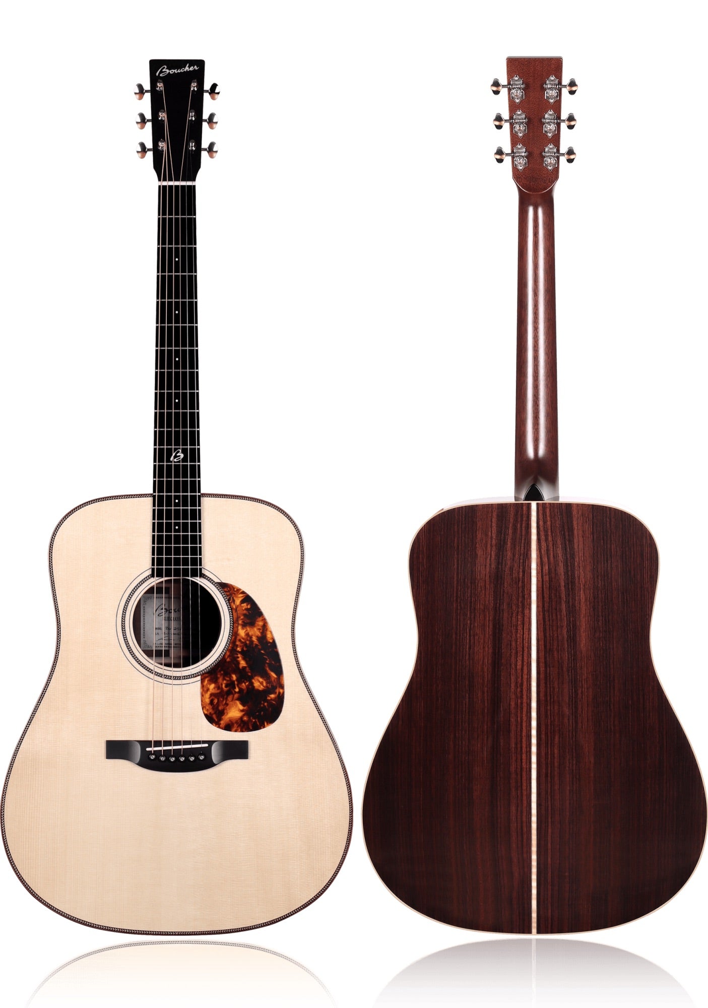 Robin Boucher personally selects Adirondack red spruce for the bracing and soundboard in order to give the instrument its special bluegrass sonority. Rich low ends, driving mids and beefy highs describe the sound spectrum of our Bluegrass Goose. This guitar is incredibly easy to play due to the elevated soundboard radius and the unique profile of the neck which will perfectly match the hand of the guitarist.