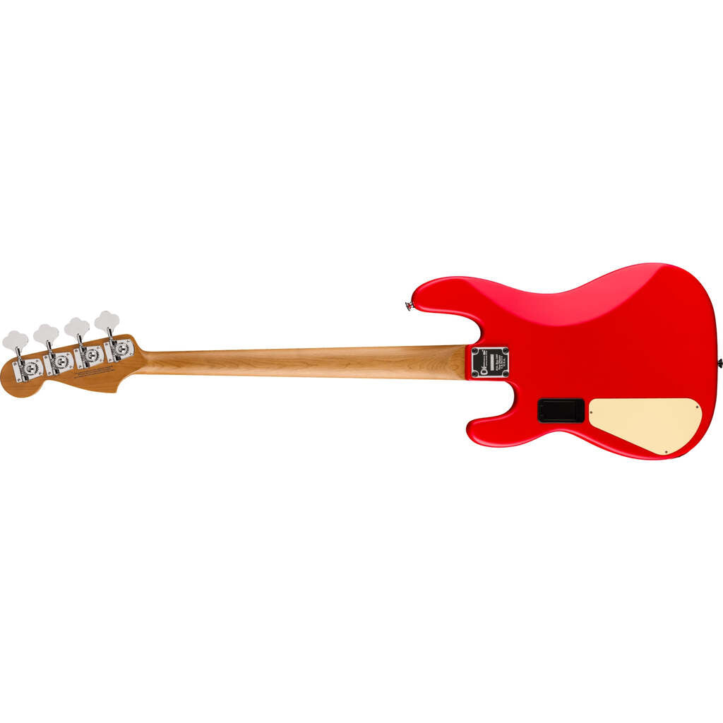 This 4-string bass is presented in a Natural Mahogany and Satin Ferrari Red finishes with chrome hardware, cream pickup covers and licensed Fender® Precision Bass® headstock shape.