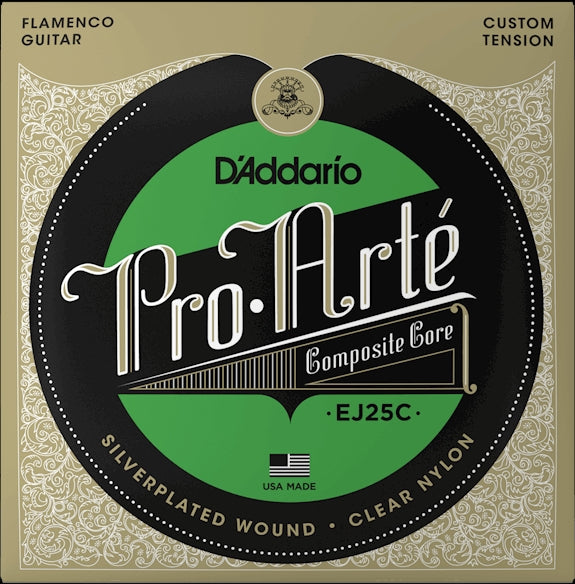 EJ25C Flamenco sets are constructed using a new variation of our exclusive multifilament stranded core material that dramatically improves the life and tuning consistency of the wound strings when compared to traditional nylon cores. Complimented by clear nylon trebles, this set was created and tested with artists worldwide to deliver a flexible feel while still maintaining a quick attack response that is essential for flamenco players. This Flamenco set is also available in a black nylon version (EJ25B), providing tone and appearance options for both traditional and progressive players. Includes Alternate Composite 3rd String for increased projection.
