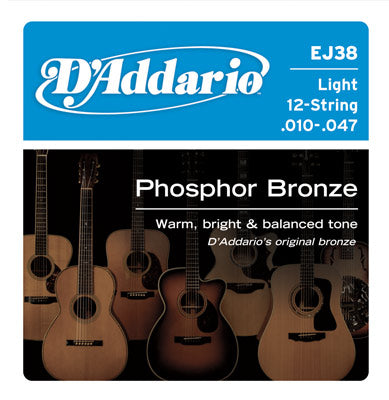 EJ38, DAddarios most popular 12-string set, offers the ideal balance of volume, projection and comfortable playability. Designed for all makes and models of 12-string acoustic guitars.