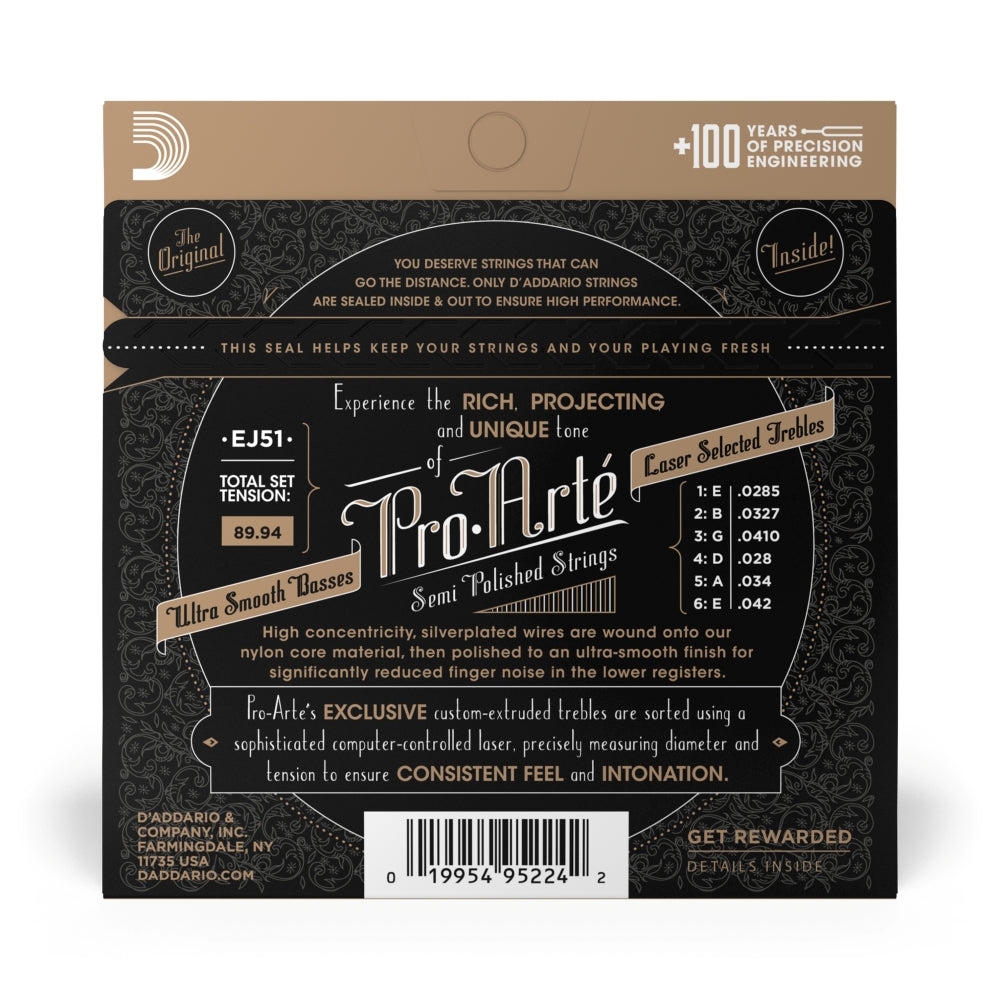 D'Addario - EJ51 Pro-Arte Classical Guitar Strings with Polished Basses - Hard Tension