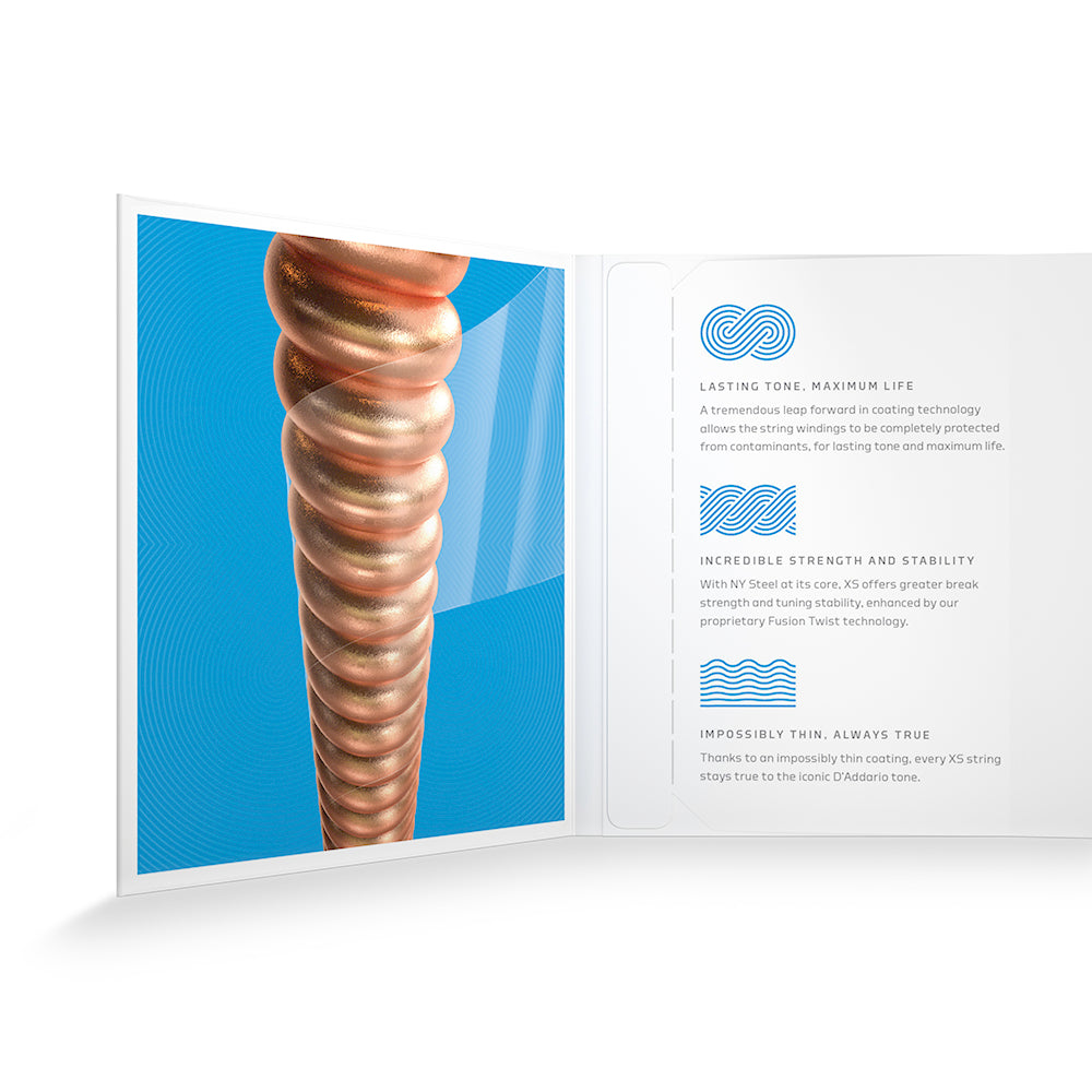 XS is breathing new life into coated strings. With its ultra-thin film coating on every wound string and a unique polymer treatment on the plain steels, XS offers our highest level of protection, for maximum life with an uncommonly smooth feel. XS also features NY Steel high carbon core and plain string wire, along with our exclusive Fusion Twist, for incomparable break strength and tuning stability. XS is the most innovative coated string ever created.