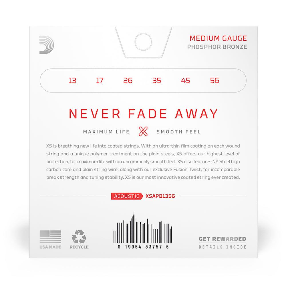 D'Addario XS Acoustic Phosphor Bronze combines our most popular acoustic alloy with our most advanced string coating technology, resulting in clear tone, smooth feel, and superior tuning stability — all with the longest possible string life. Available in Phosphor Bronze for 6 and 12-string acoustic guitar, ranging from extra-light to medium gauges.