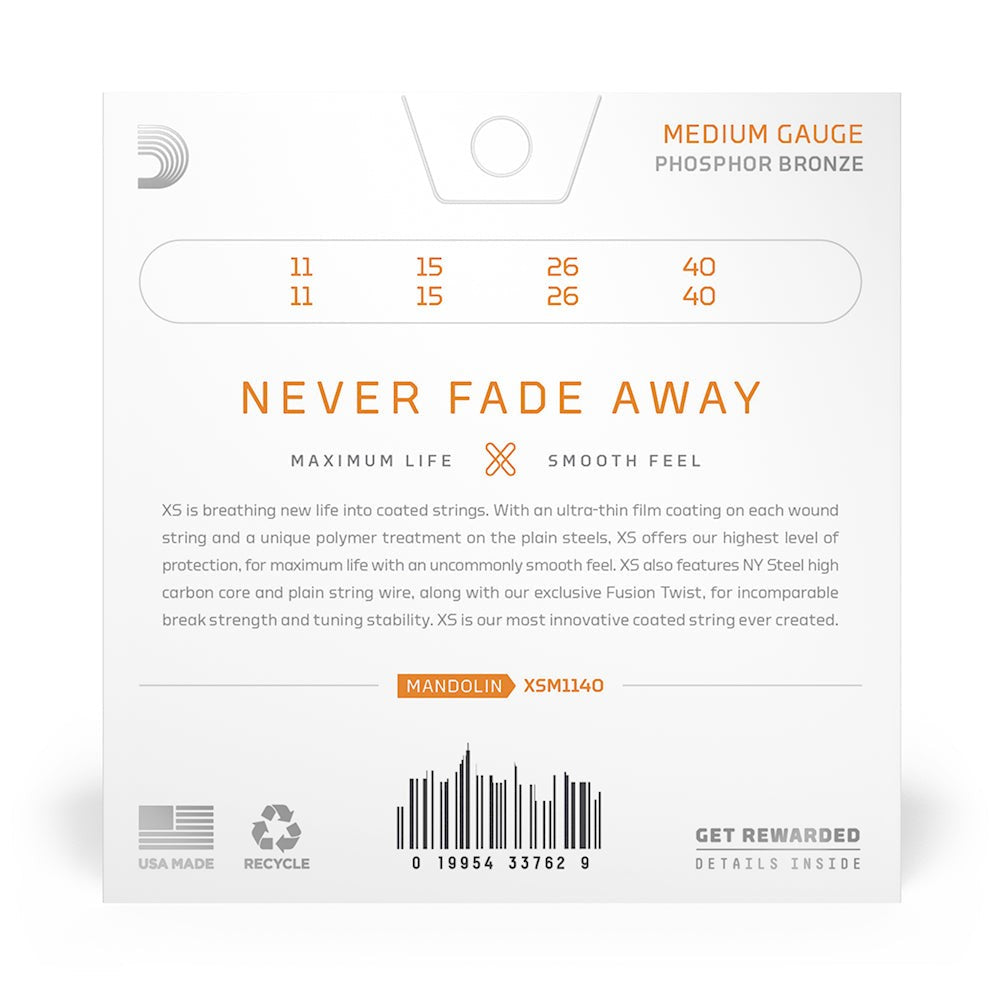 D'Addario XS Mandolin Phosphor Bronze combines our most popular acoustic alloy with our most advanced string coating technology, resulting in clear tone, smooth feel, and superior tuning stability — all with the longest possible string life.