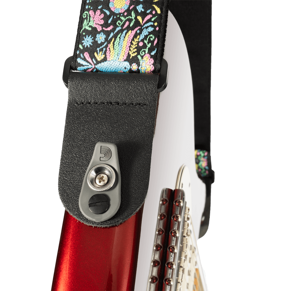 L'une des plus anciennes astuces pour sécuriser une sangle de guitare consiste à placer une rondelle en caoutchouc sur la goupille d'extrémité. La sangle Pad Lock apporte sa propre touche à cette technique éprouvée, en fixant la pièce en caoutchouc à la sangle. Aucune pièce supplémentaire, aucun matériel d'installation : il suffit de mettre la sangle et de tirer la languette en caoutchouc sur la goupille d'extrémité. Profitez de la commodité et de la sécurité d'une sangle Pad Lock, avec le style de ce design unique Phoenix Dream.