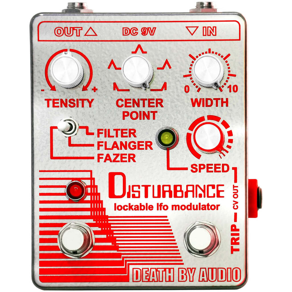 - But that’s not all - the pedal introduces a brand-new way to control an effect: the custom-designed modulation core lets you pause the LFO where it stands and listen to the strange world of frozen modulation. Not only does this new system control its own sounds, the Disturbance includes a CV OUT jack which lets the modulation control signal be sent to whatever device dares let it in.