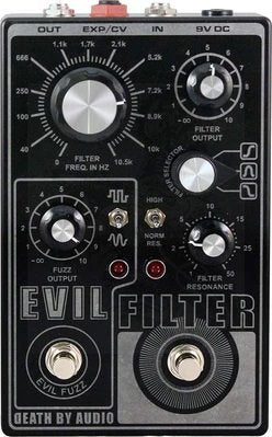 Filtre Psycho HP/BP/LP avec un boîtier élégant, gravé au laser. Peut être poussé au-delà de la limite en octaves vers le haut, vers le bas, et en enveloppes pliantes. Sa puce IC de qualité médicale crée un filtre hyper précis qui ne ressemble à aucun autre. Le Evil Fuzz emmène les signaux dans une dimension beaucoup plus sombre, en offrant un basculement de compression inversé pour pousser les sons encore plus loin dans les profondeurs. Grâce à l'entrée CV/Expression, vous pouvez contrôler la fréquence de coupure du filtre avec une pédale d'expression ou un synthétiseur.
