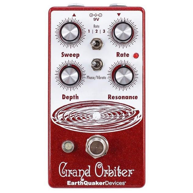 La commande Depth mélange le signal décalé avec le signal non traité et contrôle l'intensité de l'effet. La commande Sweep règle la fréquence de pointe du signal de phase, tournez dans le sens des aiguilles d’une montre pour que le balayage soit vif et intense, alors que tourner dans le sens inverse des aiguilles d’une montre donne un pic plus sombre et plus décontracté. La résonance offre un large éventail de possibilités de contrôle de la régénération et, à des réglages plus élevés, ajoute une tonalité plus prononcée et résonante. Vous pouvez également utiliser le Grand Orbiter comme véritable vibrato de tonalité avec le sélecteur «Phase / Vibrato». En mode «Vibrato», le signal non traité est supprimé et les commandes de profondeur servent de commande de volume. Cette pédale est 100% analogique, true bypass et construite entièrement à la main à Beachy Akron, Ohio.